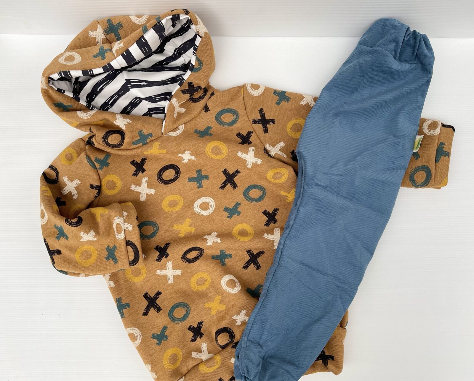 Cooles Set bestehend aus warmem Kapuzenpullover aus Kuschelsweat und passender Hose aus Baumwoll ord