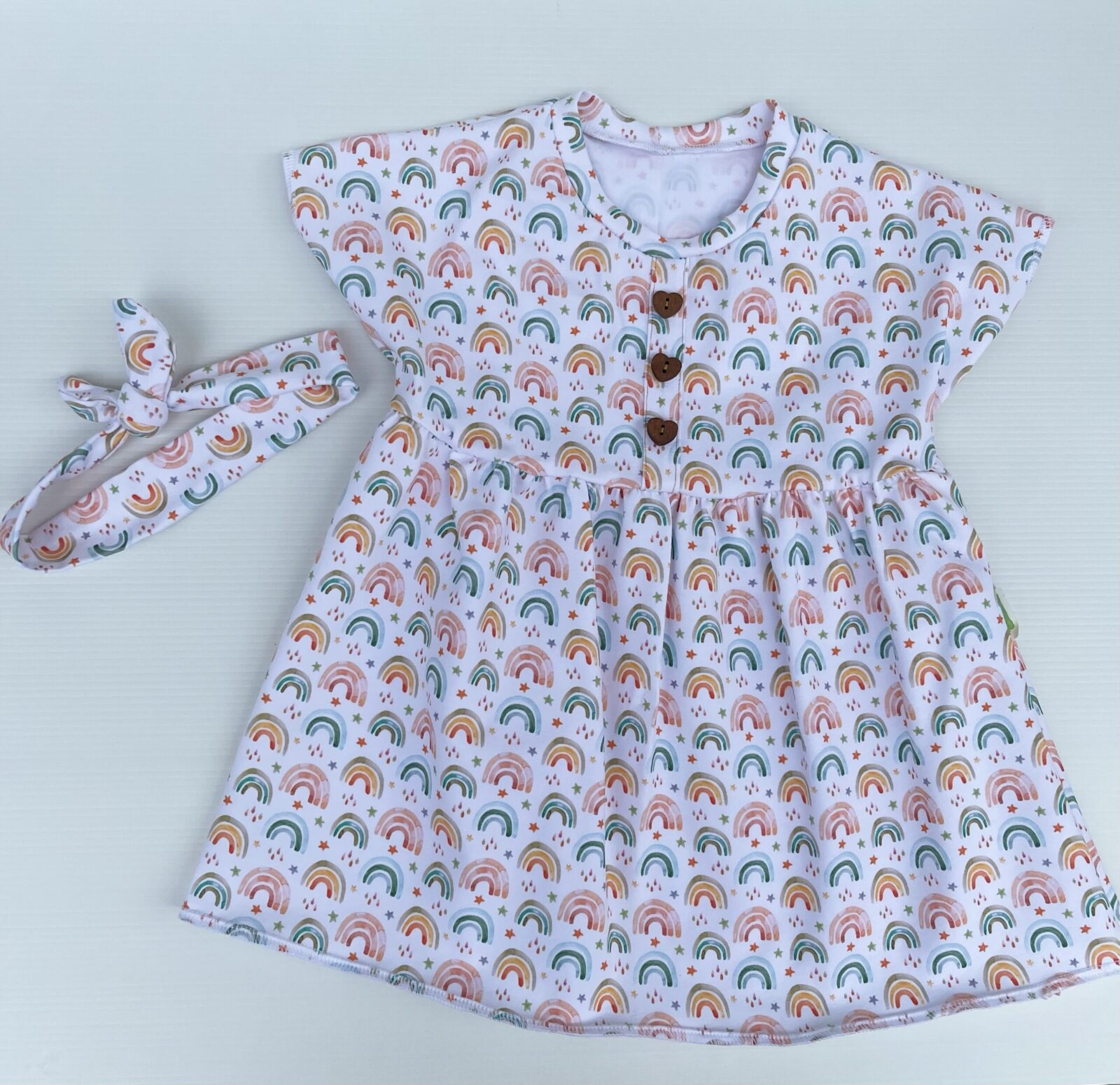 Romantisches Kleid aus Baumwolljersey mit Knöpfen als Blickfang im Set mit einem Schleifen-Haarband