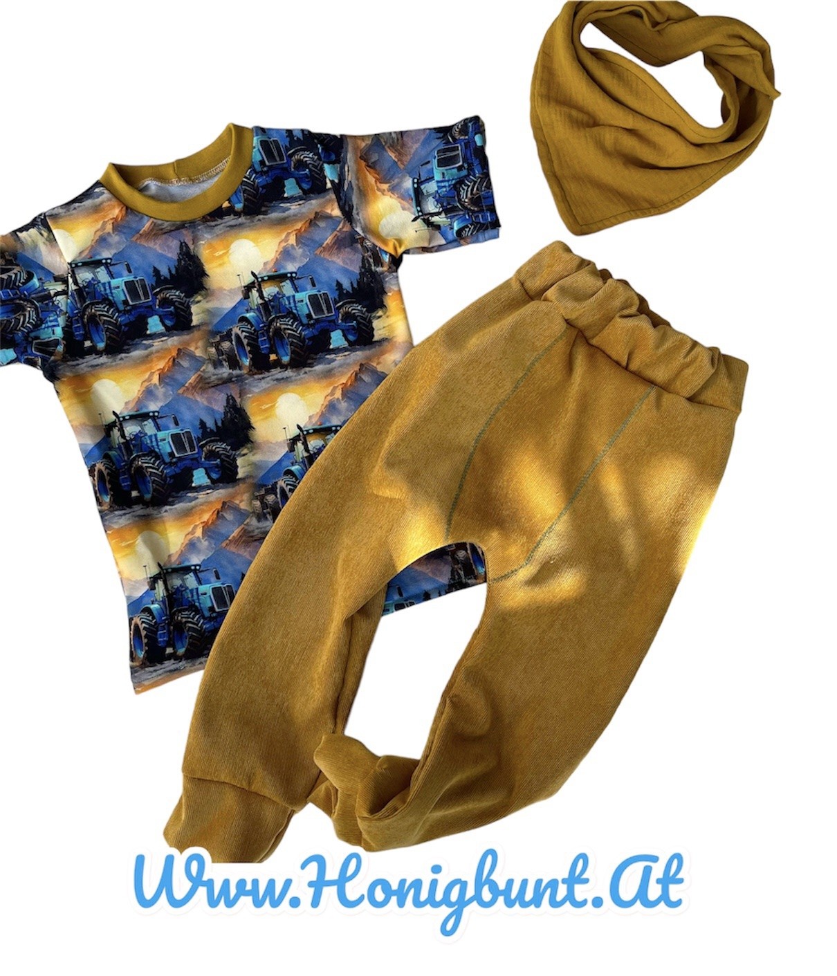 mit Traktor Kurzarm Shirt und tollem Halstuch aus Musselin