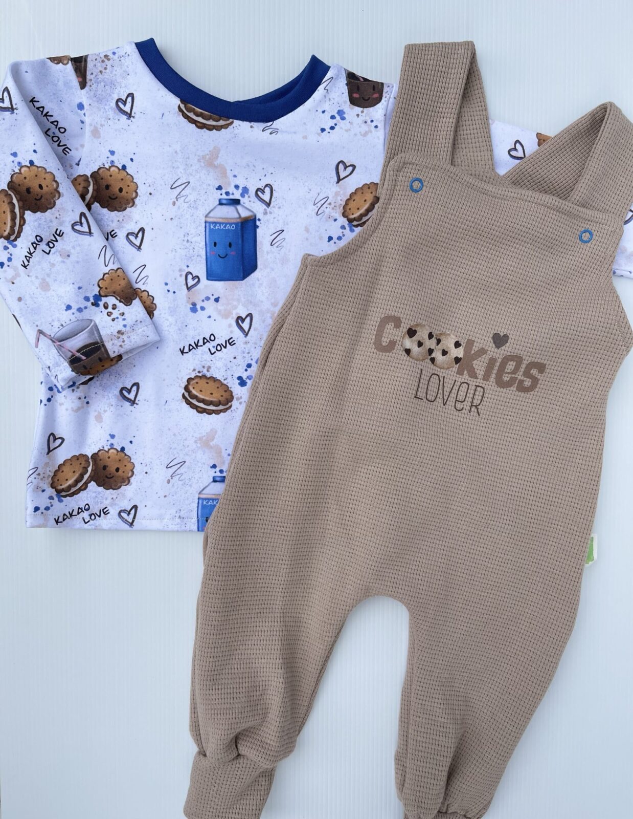 Stimmiges Set bestehend aus Latzhose aus Waffeljersey mit Langarm Shirt aus Sweatstoff passend für die Größe 74