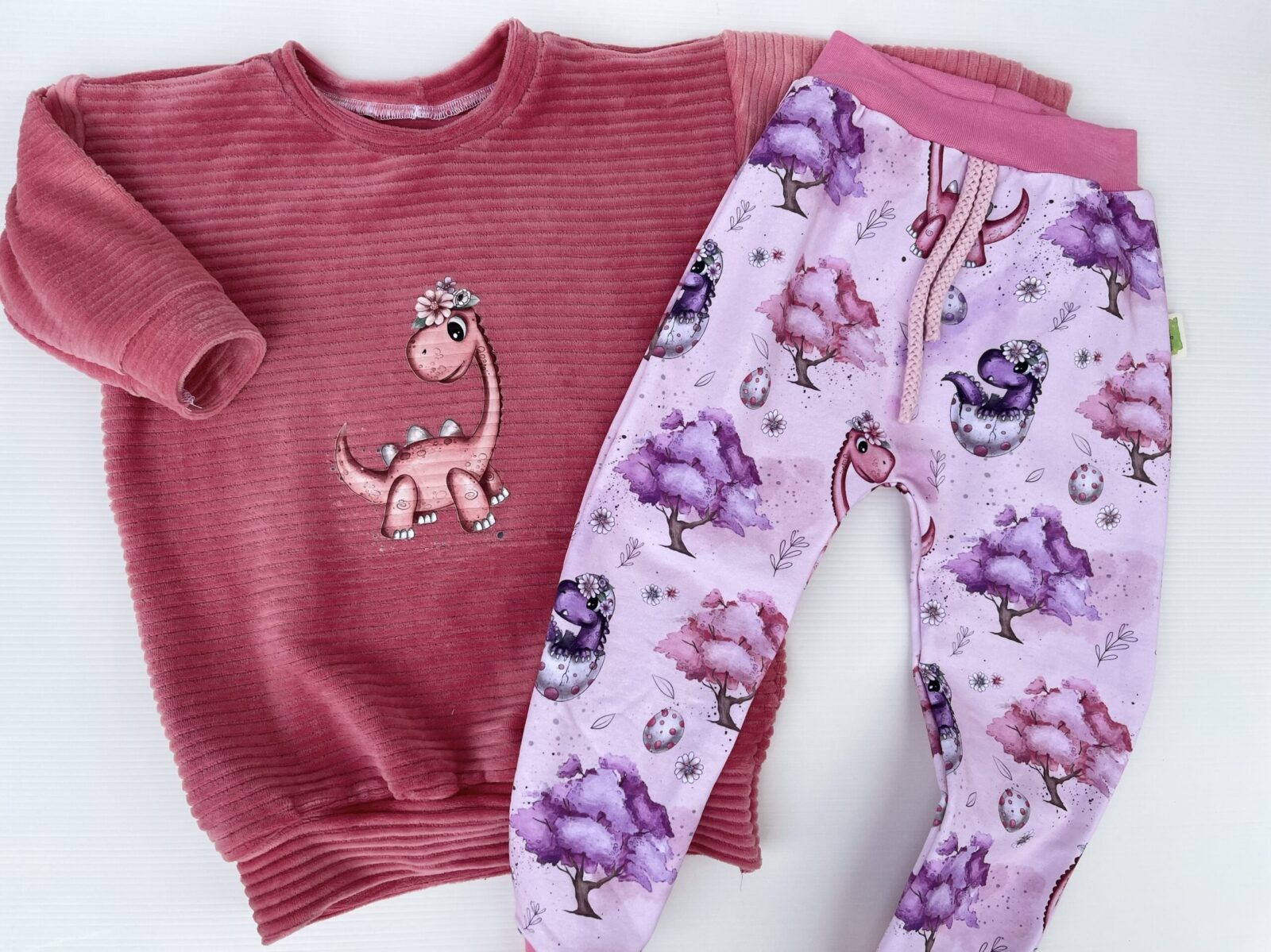 Stimmiges Set bestehend aus Pumphose aus Sweatstoff mit Pulloverkleid aus Cordjersey passend für die Größen 80 und 86