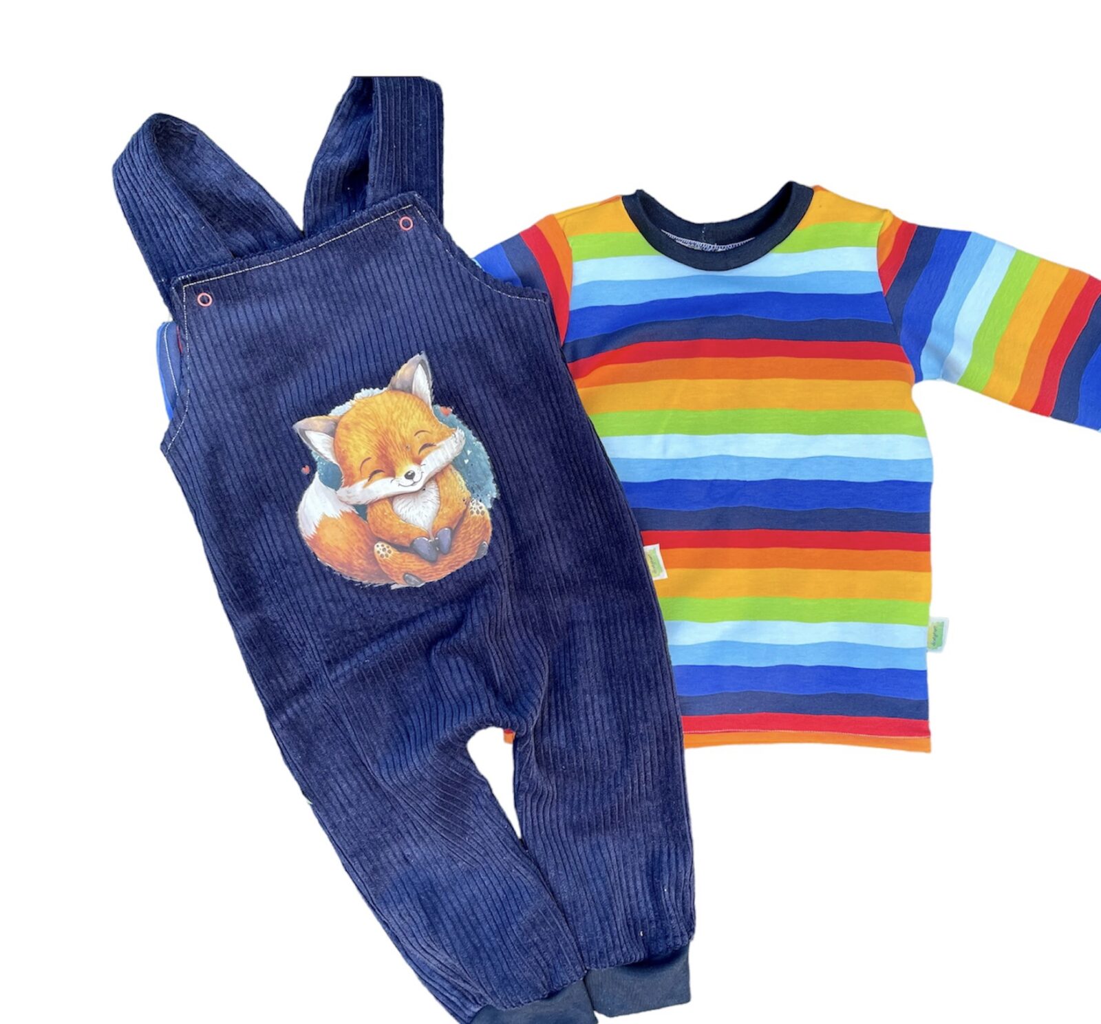 Latzhose aus Cordstoff und Langarm Shirt aus Baumwolljersey