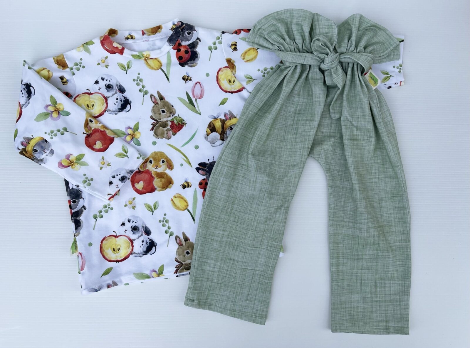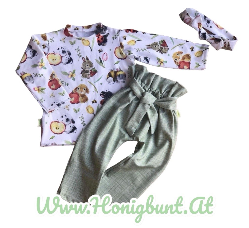 Wunderschönes Set bestehend aus Paperbag Hose mit Langarm Shirt aus Baumwolljersey passend für die Größen 80 und 86