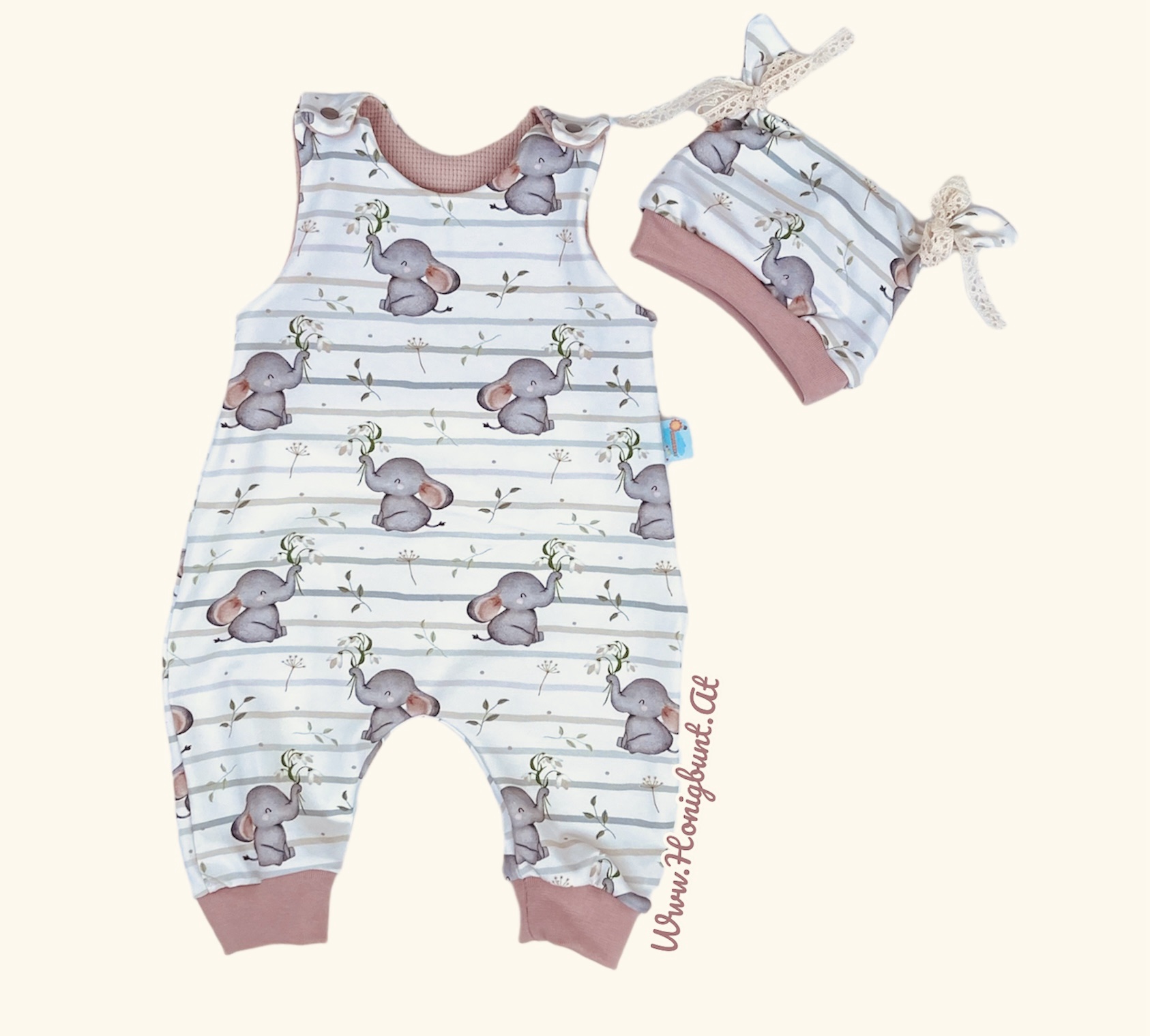 Strampelanzug und Knotenmützchen Set „Kleiner Schatz“ Größe 62