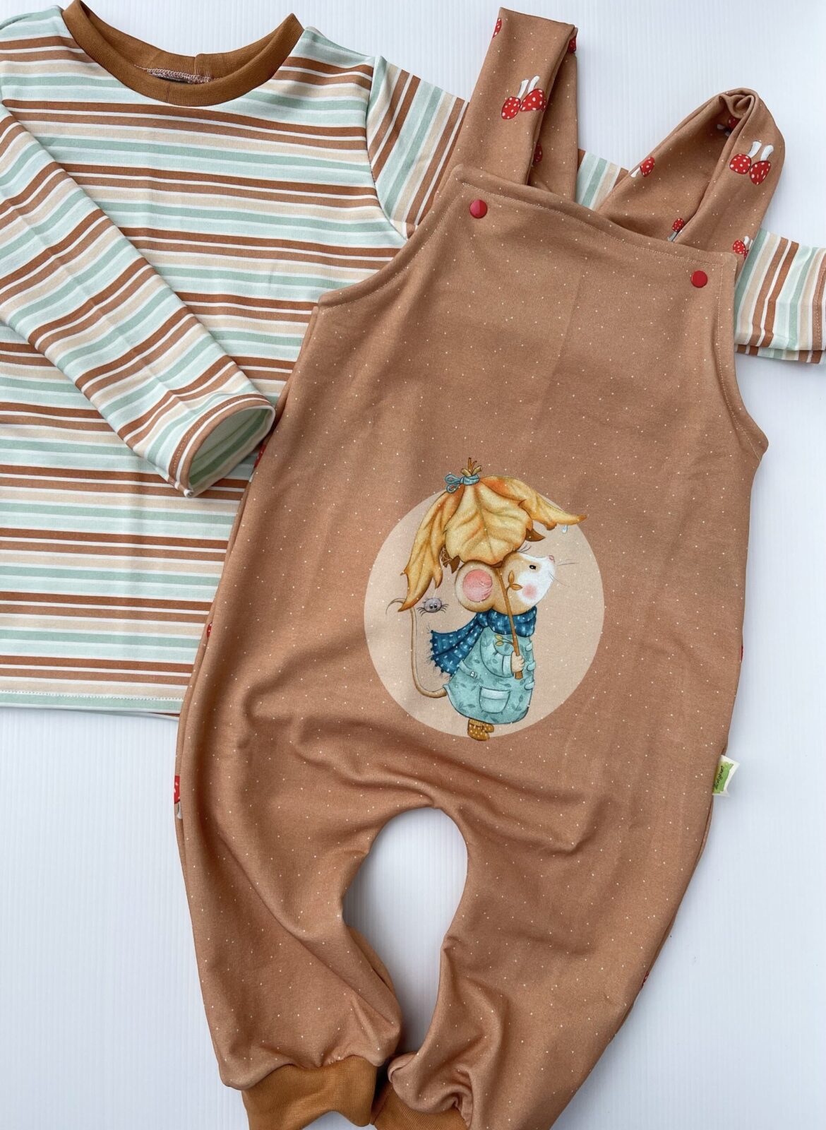 Farbenfrohe Latzhose mit passendem Langarmshirt
