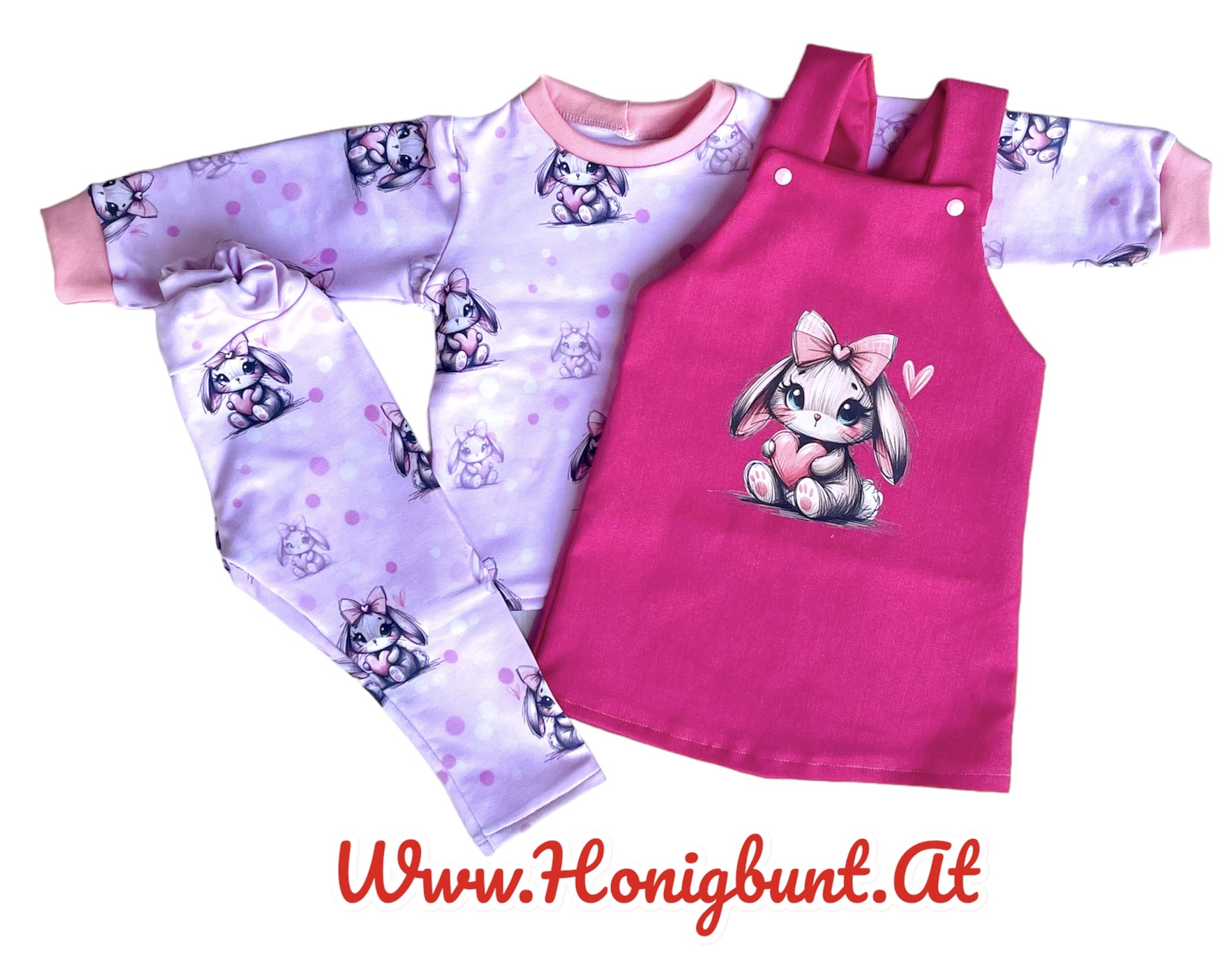 Zauberhaftes Set bestehend aus Jeans Latzkleidchen mit passendem Langarmshirt und Leggings
