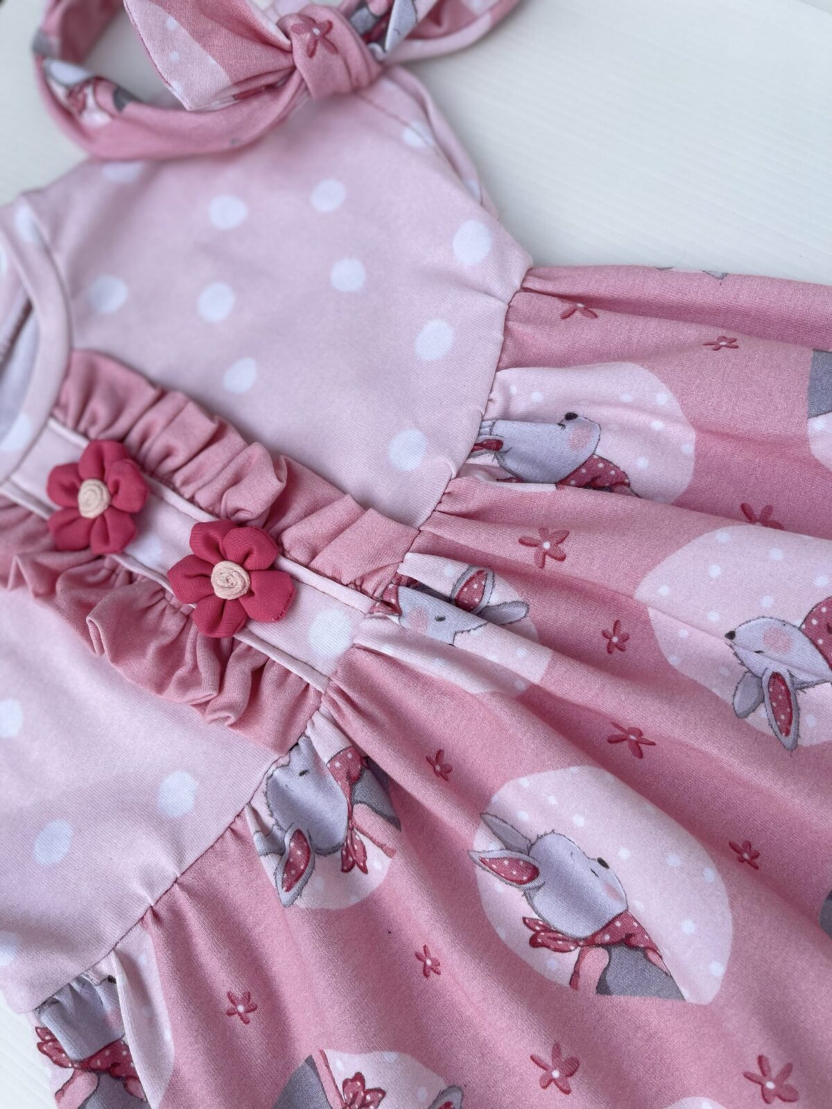 Romantisches Kleid aus Baumwolljersey mit Spitze, Rüschen und Blumen Knöpfen als Blickfang mit dazupassendem Haarband